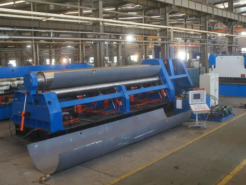 機(jī)器的上輥可以垂直和水平移動(dòng)。垂直提升是液壓傳動(dòng)。液壓缸中的液壓油作用在活塞桿上,以獲得水平運(yùn)動(dòng)。扭矩通過(guò)渦輪桿箱、渦輪滾軸和螺桿機(jī)構(gòu)傳遞,以驅(qū)動(dòng)上輥。滾筒的水平運(yùn)動(dòng),下輥只旋轉(zhuǎn)為液壓折彎?rùn)C(jī)提供扭矩,下輥配備了可調(diào)節(jié)的怠速滾筒,上輥呈滾筒形狀,這提高了產(chǎn)品的直線度。它適用于各種橫截面形狀的拖車(chē)的油罐的滾動(dòng)。EZHONG是中國(guó)領(lǐng)先的液壓卷板機(jī)制造商之一,我們以合理的價(jià)格出售高品質(zhì)的液壓機(jī)。